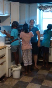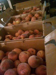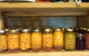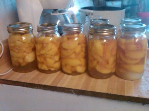 this is just one post w/ helpers, we have lots of helpers! at one point there were 7 of us working on the process. One washed the peaches, we dunked them in hot water, put them into cold water, peeled them, sliced them, put them in a sugar syrup, packed them and then ran them through the water bath.