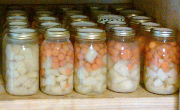 We also did a whole lot more of carrots/potatos mixed. We add these into our stews, or roasts. They are not mushy at all – and are really yummy.